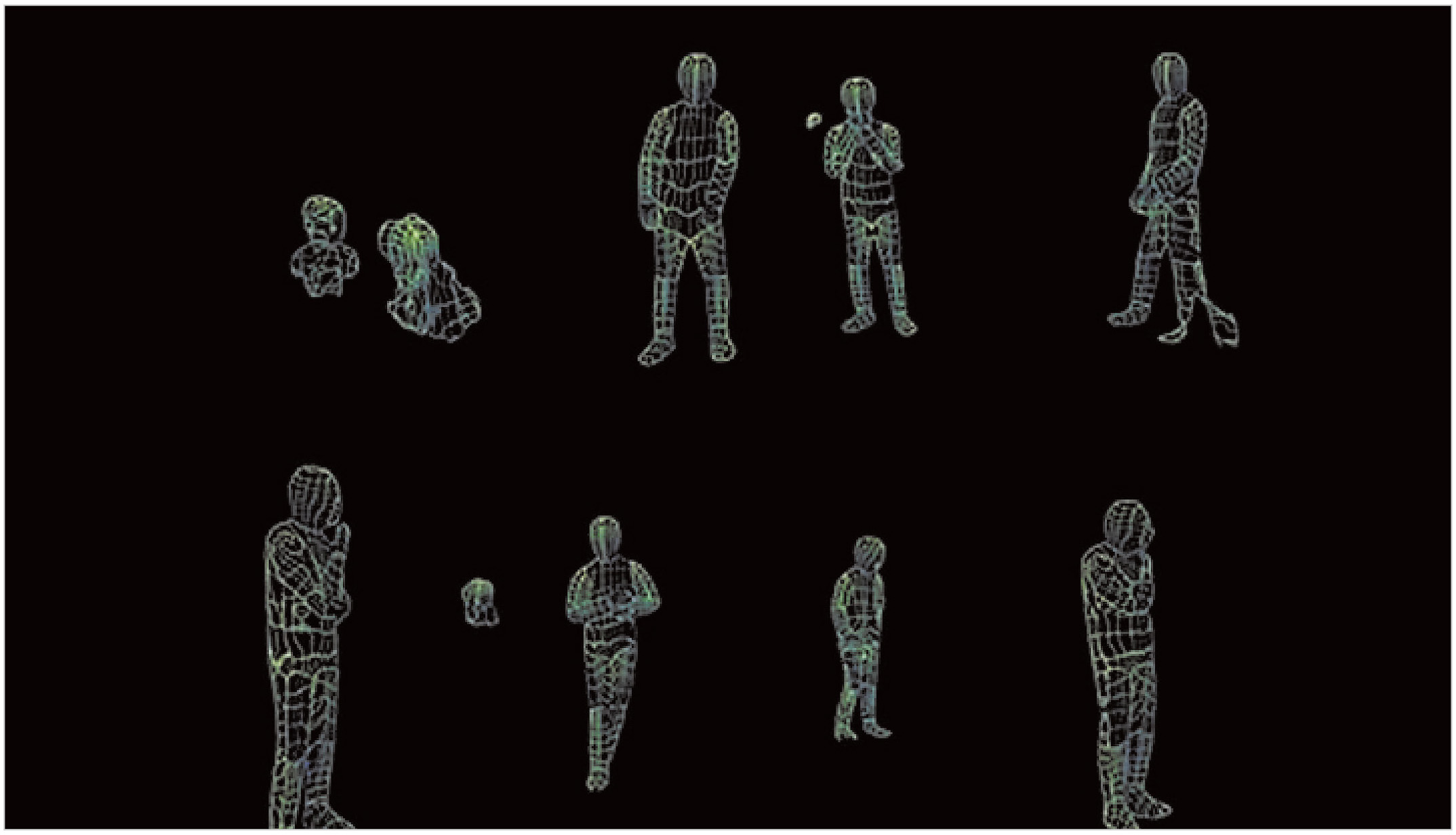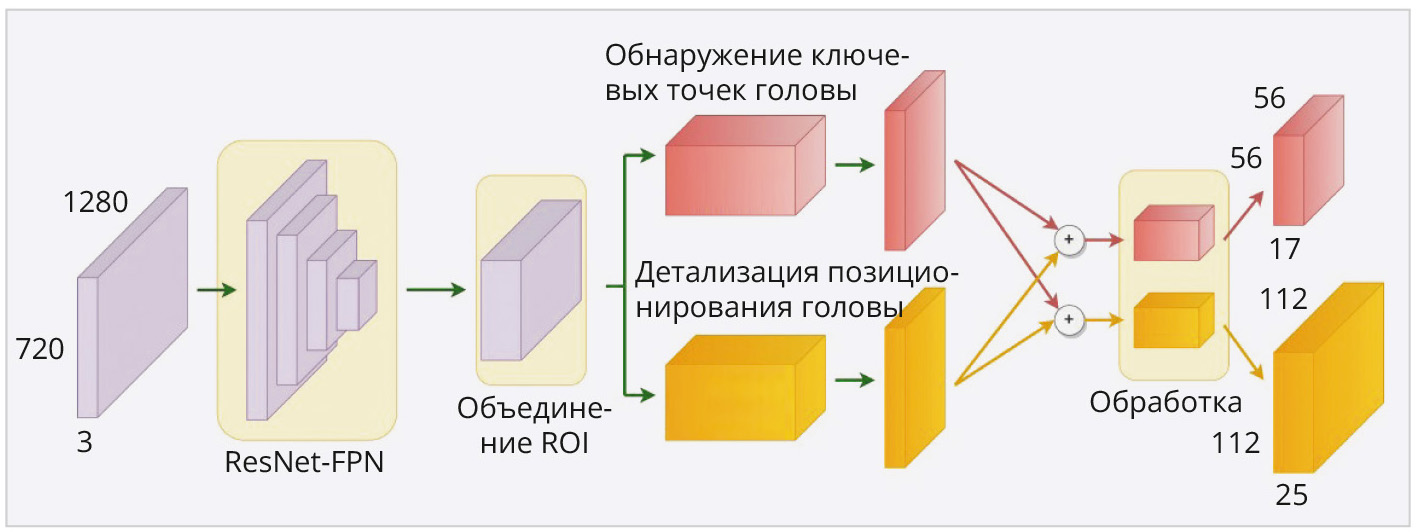 Так можно получать информацию на основе изображений для прогнозирования UF-карты человеческих тел. Современные алгоритмы оценки позы двухступенчатые: сначала запускается независимый детектор человека по его физической контурной модели, чтобы сформировать рамку-ограничитель, затем проводят оценку позы, исходя из изученных баз данных изображений и поз людей.