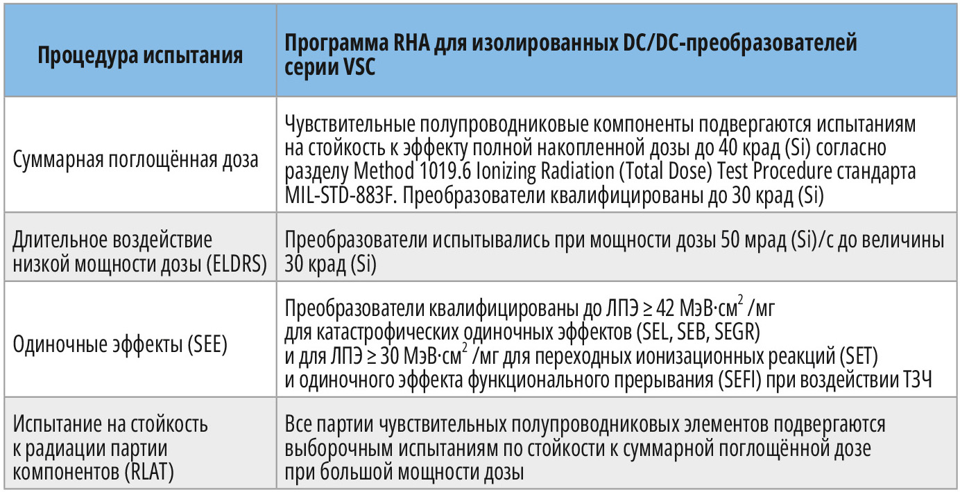 Подробнее с программой гарантирования радиационной стойкости DC/DC-преобразователям серии VSC можно ознакомиться в документе [4].