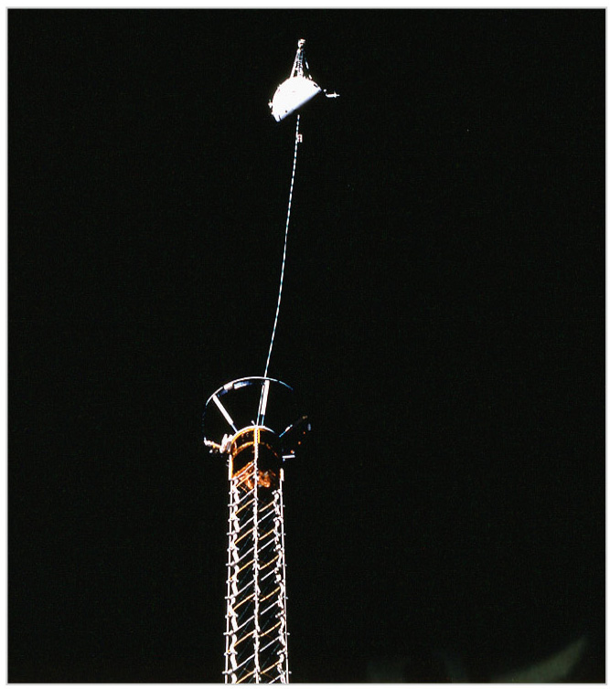 После успешных предстартовых испытаний на Земле и тщательных проверок в космосе было начато очень медленное развёртывание троса, показанное на рис. 2 [4].