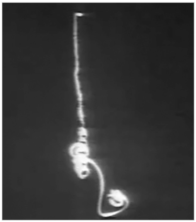 Джозеф приводит пример «притяжения» этих плазменных образований к источнику электромагнитного поля. На рис. 8 (рис. 9 у Джозефа) показано, как в течение нескольких часов после обрыва троса сотни светящихся объектов собирались к электрифицированному тросу, окружали его и продолжали движение вместе с ним.