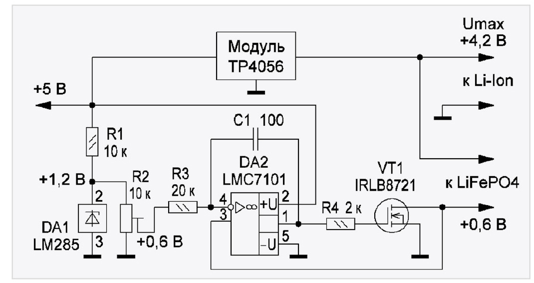 Для потребителей их основное отличие заключается в номинальных значениях напряжений на клеммах: 3,7 вольта и 3,2 вольта соответственно. Кроме того, у первых типов на конечном этапе заряда CV (Constant Voltage – постоянное напряжение) значение равно 4,2 вольта, а у вторых только 3,6. Приведённые цифры обязывают владельцев обоих типов литиевых аккумуляторов либо иметь двойной парк ЗУ, либо приобретать универсальные. Последнее, конечно, предпочтительнее. Однако, если ЗУ для аккумуляторов Li-Ion уже были ранее приобретены или изготовлены самостоятельно, встаёт вопрос: а нельзя ли путём несложной доработки приспособить их и для заряда LiFePO4? Инженерное решение отвечает на этот вопрос положительно.