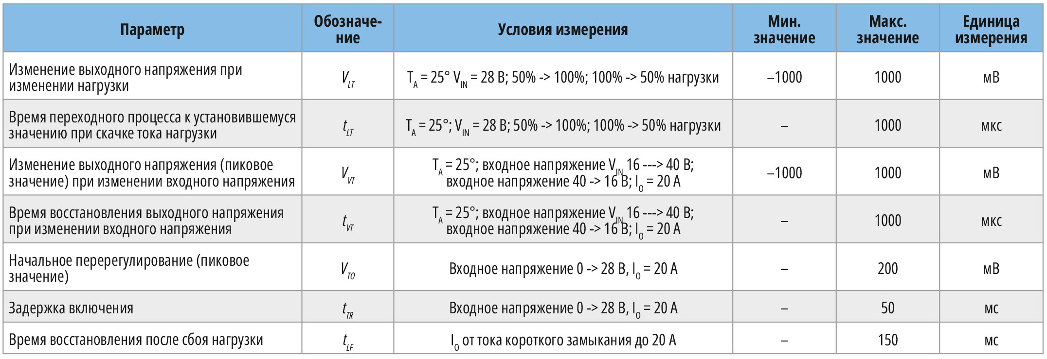 В табл. 3 приведены динамические характеристики одноканального модуля LFL2805S-CH.