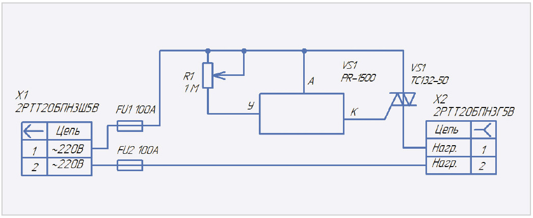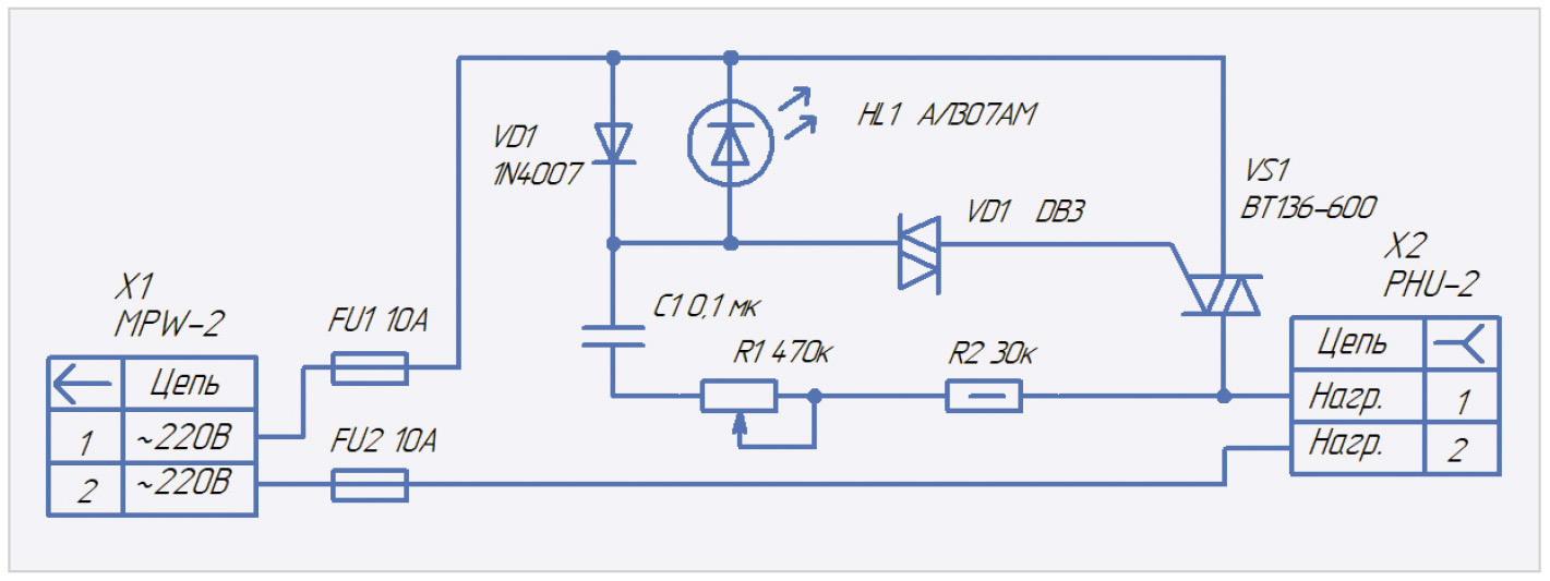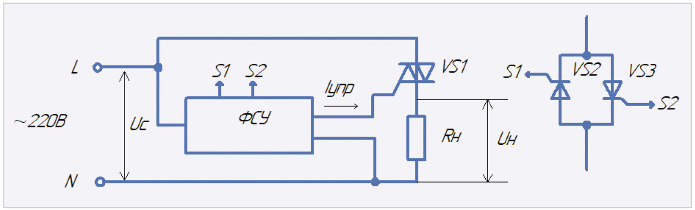 Функциональная схема однофазного симисторного регулятора мощности для активной нагрузки приведена на рис. 1.