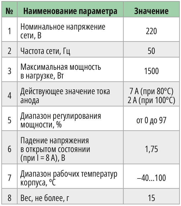Основные технические характеристики фазового регулятора PR-1500 приведены в табл. 2.