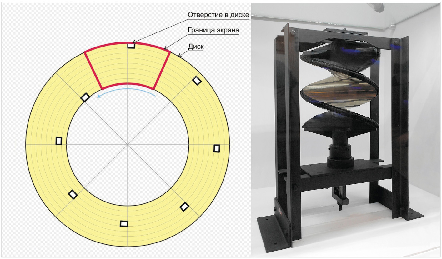 Зворыкин последовательно продолжал разработки, начатые ещё совместно с Розингом, отталкивающимся в теории от передатчика механического типа на основе диска Нипкова. Развёртку изображения в «механическом телевидении» впервые предложил немецкий изобретатель Пауль Нипков в 1884 году. Диск имеет ряд отверстий, расположенных по спирали. К нему прилагался винт для механической развёртки (рис. 7).