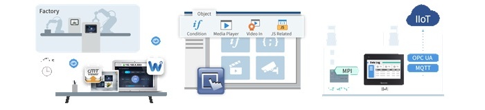 Следуя успешному опыту предыдущих моделей семейства cMT X, новое устройство открывает дополнительные возможности для обработки мультимедийного контента, дистанционного мониторинга и взаимодействия с технологическими платформами IIoT. За счет поддержки технологий WebView и cMT Viewer с улучшенными механизмами потоковой трансляции видео, устройство позволяет получать полную картину состояния производственной линии и оборудования в реальном времени непосредственно с компьютера или смартфона.