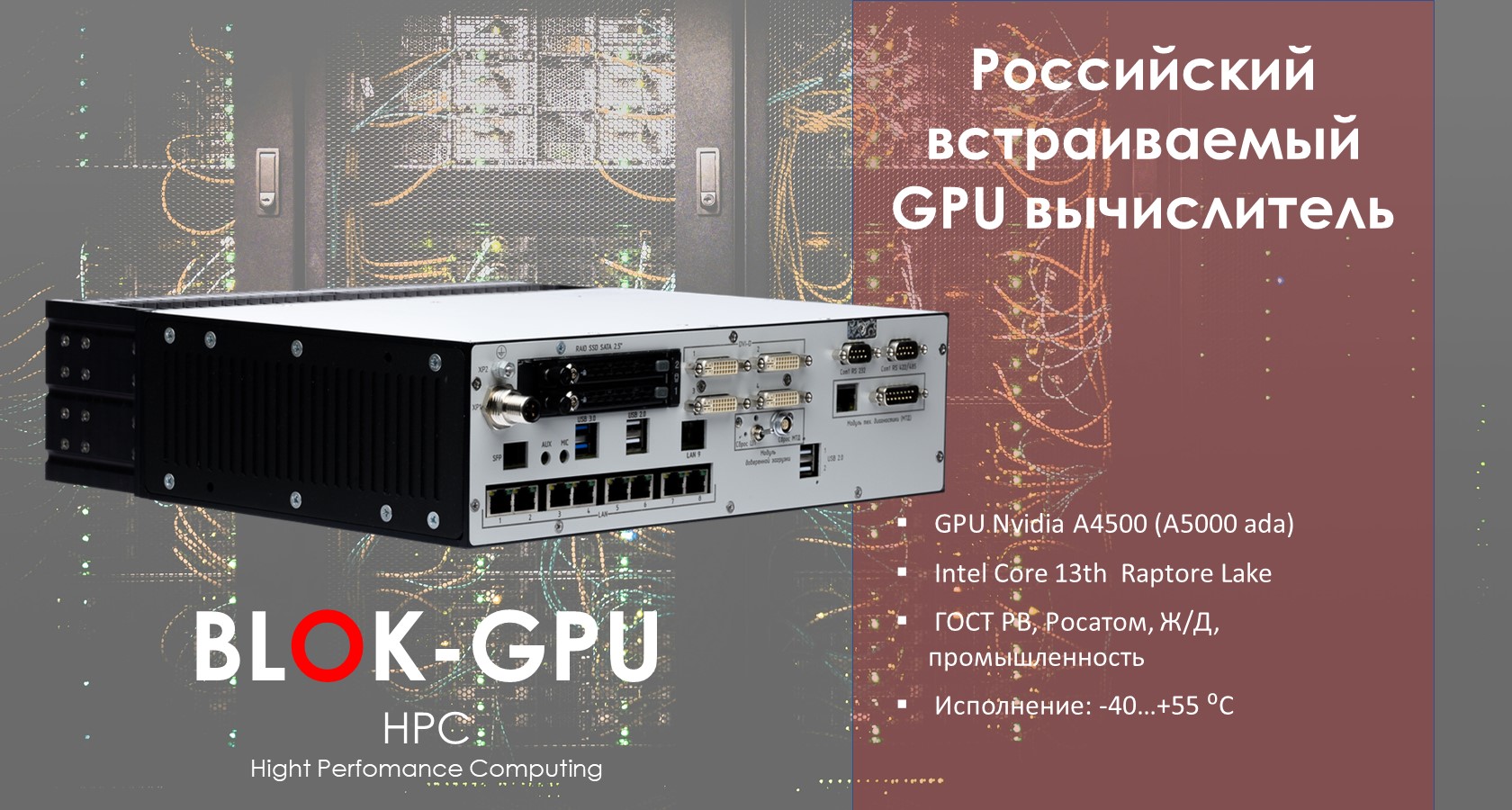 Современный функционал передовых графических адаптеров с популярной программно-аппаратной средой CUDA в составе встраиваемых вычислителей серии BLOK-GPU позволяет российским инженерам, ОЕМ-производителям и системным интеграторам генерировать собственные инновационные программно-аппаратные решения класса HPC, сокращать циклы/стоимость вывода на рынок и модернизации перспективных вычислительных комплексов с функционалом ИИ, существенно повышать спектр решаемых задач, быть впереди оппонентов на локальных и внешних рынках.