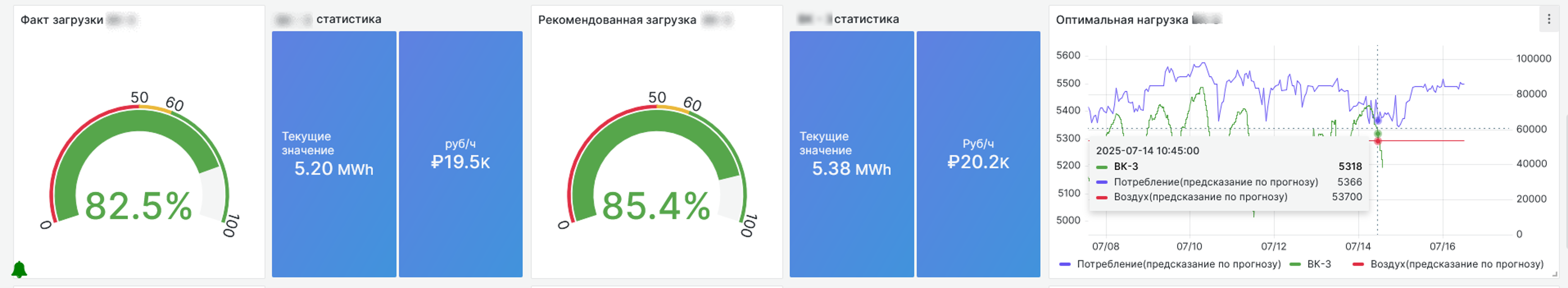 Помимо базовых функций, внедрение платформы обеспечило механизмы для контроля эффективности и мотивации персонала. Показатели КПЭ выводятся из АСОУ на электронные доски в цехах – наглядное повышение мотивации операторов для выбора ими оптимальных режимов работы. Например, режим нагрева сырья может быть достигнут с помощью разных энергоресурсов, и оператор выбирает наиболее подходящий в каждом производственном цикле, а система позволяет оценить эффективность выбранного способа.